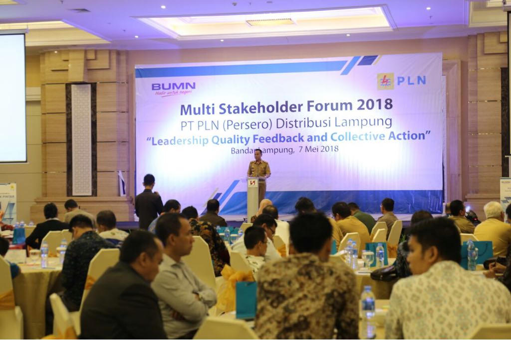 “Kita berharap upaya-upaya jangka menegah yang dilakukan PLN, di antaranya melalui penambahan ketersedian daya kelistrikan di desa, penambahan pembangkit PLTA 56 MVA, penambahan jaringan transmisi juga penambahan gardu induk di 5 lokasi akan mempercepat Lampung terang dapat terwujud sesuai yang ditargetkan PLN,” katanya saat membuka acara Multi Stakeholder Forum 2018 PT PLN Distribusi Lampung yang bertajuk “Leadership Quality Feedback and Collective Action” di Ballroom Swiss-bell Hotel, Bandarlampung, Senin (7/5/2018).