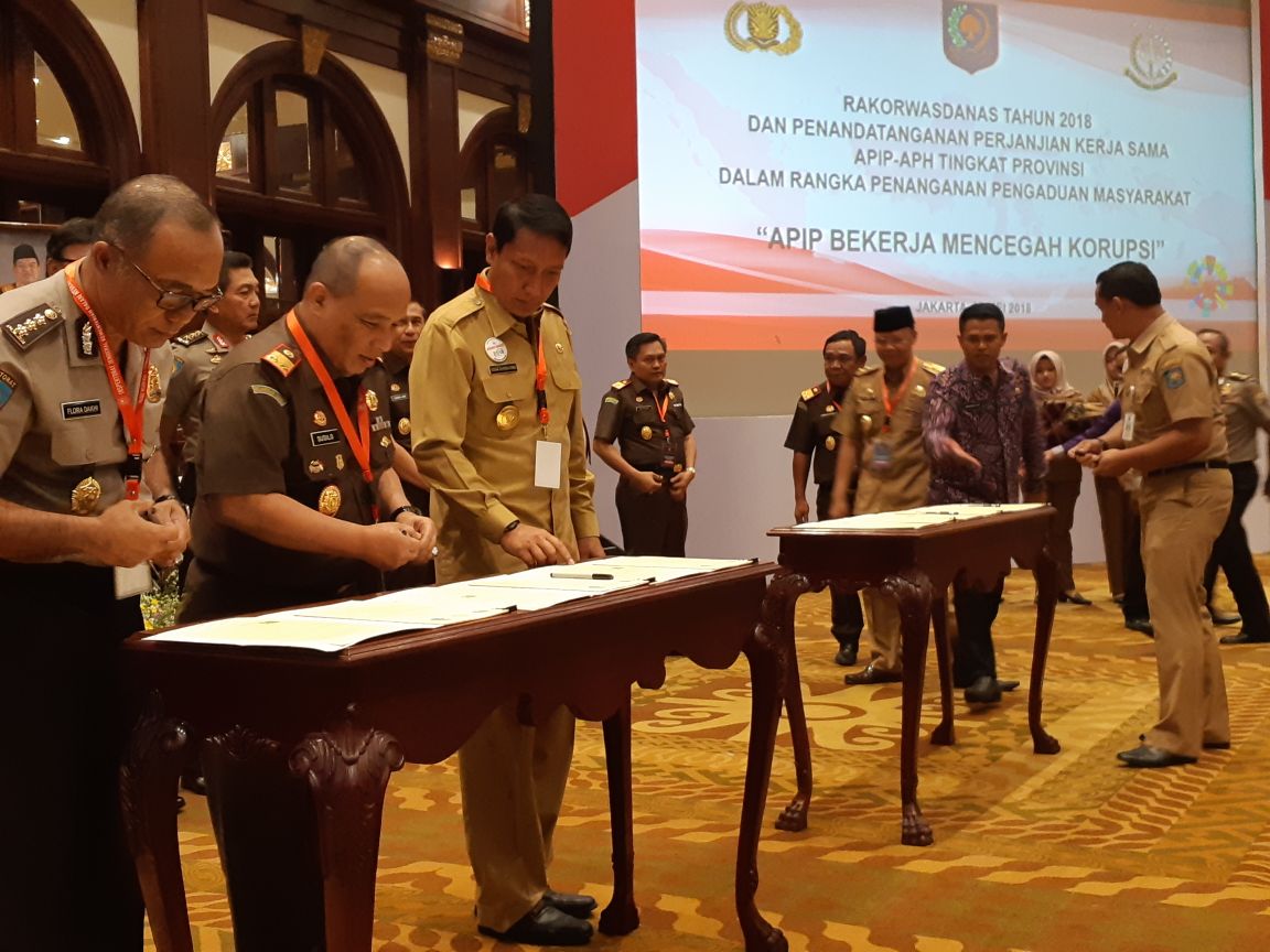 Latar belakang pentingnya MoU dan Perjanjian Kerjasama ini, di samping mandat dari Pasal 385 Undang-Undang Nomor 23 Tahun 2014 tentang Pemerintahan Daerah dan Instruksi Presiden Nomor 1 Tahun 2016 tentang Percepatan Pelaksanaan Proyek Strategis Nasional Negara yang mengamanatkan agar APIP dan APH berkoordinasi dalam penanganan pengaduan masyarakat, juga agar tidak terjadi kegamangan penyelenggara pemerintahan daerah dalam bertindak karena takut tersangkut pidana atau dicari-cari kesalahannya untuk dipidana, sehingga pembangunan daerah dapat berjalan efektif. (Hum)