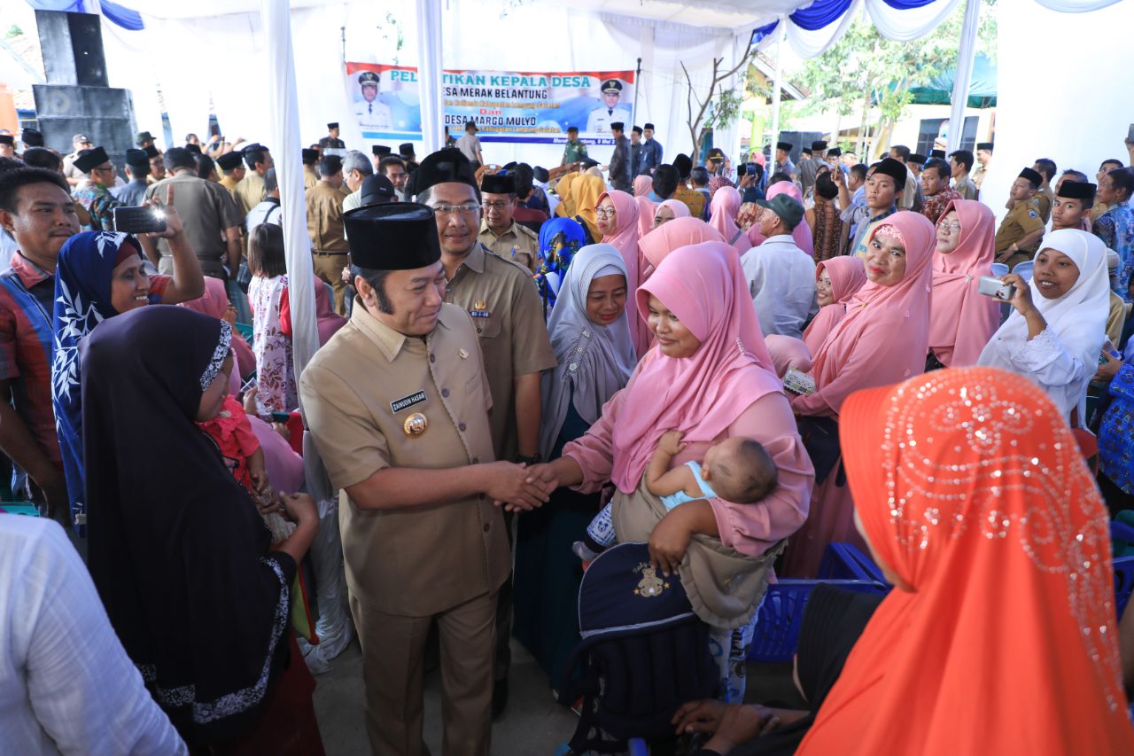 Kedua orang Kades tersebut yakni, Muhammad Yumhari Kades Merak Belantung Kecamatan Kalianda, dan Rohmawati Kades Margo Mulyo Kecamatan Jati Agung. Pelantikan dan pengambilan sumpah Kades itu, dipusatkan di Lapangan Balai Desa Merak Belantung, Kecamatan Kalianda, Selasa (8/5).