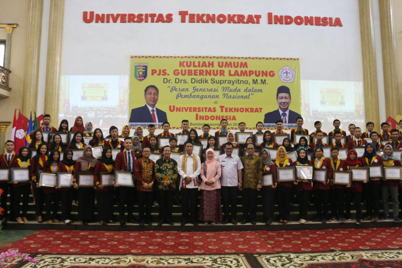 Menurut Didik, pemuda merupakan aset bangsa. Hancur dan kejayaan bangsa ini terletak di pundak pemuda. “Melalui kuliah umum ini, Pemprov Lampung memberikan motivasi dalam menghadapi tantangan dan hambatan yang di hadapi pemuda kedepan serta kiat kiat dalam menjalaninya. Potensi Teknokrat sendiri luar biasa, karena telah menghasilkan 69 juara di tingkat Nasional, Asean bahkan Asia,” ujar Didik. Kuliah Umum ini juga dihadiri Rektor UTI Nasrullah Yusuf. (Hum)