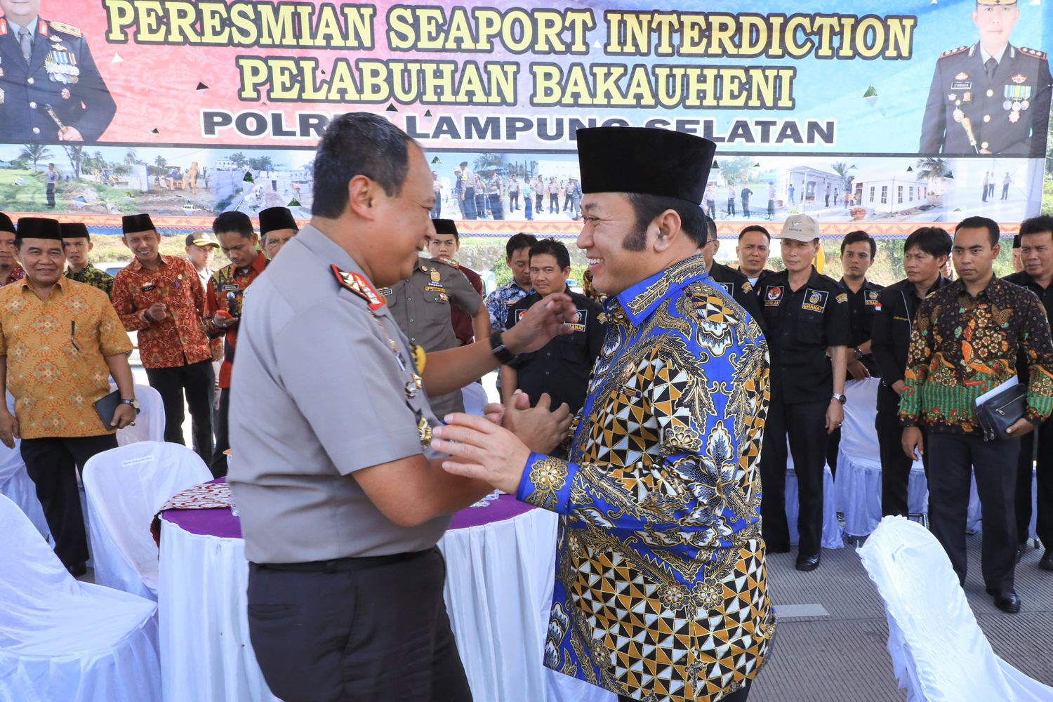 Peresmian ditandai dengan penandatanganan prasati oleh Kapolda dilanjutkan dengan prosesi gunting pita oleh Bupati Lampung Selatan Dr. H. Zainudin Hasan, M.Hum sebagai tanda digunakannya pos pemantau masuknya barang-barang haram dan illegal lainnya ini.
