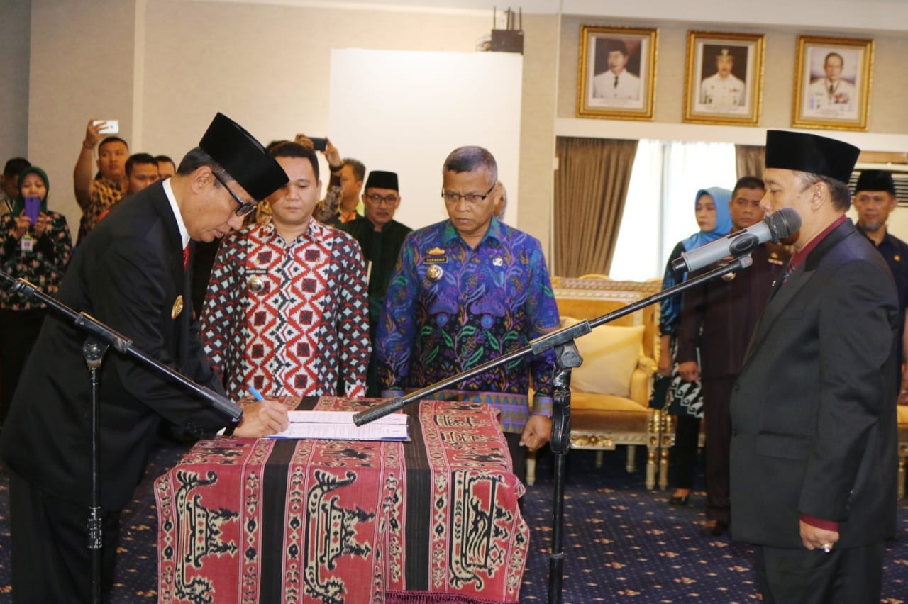 Bandar Lampung, www.lensamedia.net – Pjs. Gubernur Lampung Didik Suprayitno melantik Lukmansyah, SE, MT sebagai Pejabat Fungsional Widyaiswara Ahli Utama pada Badan Pengembangan Sumber Daya Manusia Provinsi Lampung, di Ruang Rapat Utama, Kantor Gubernur Lampung, Kamis (24/5/2018).
