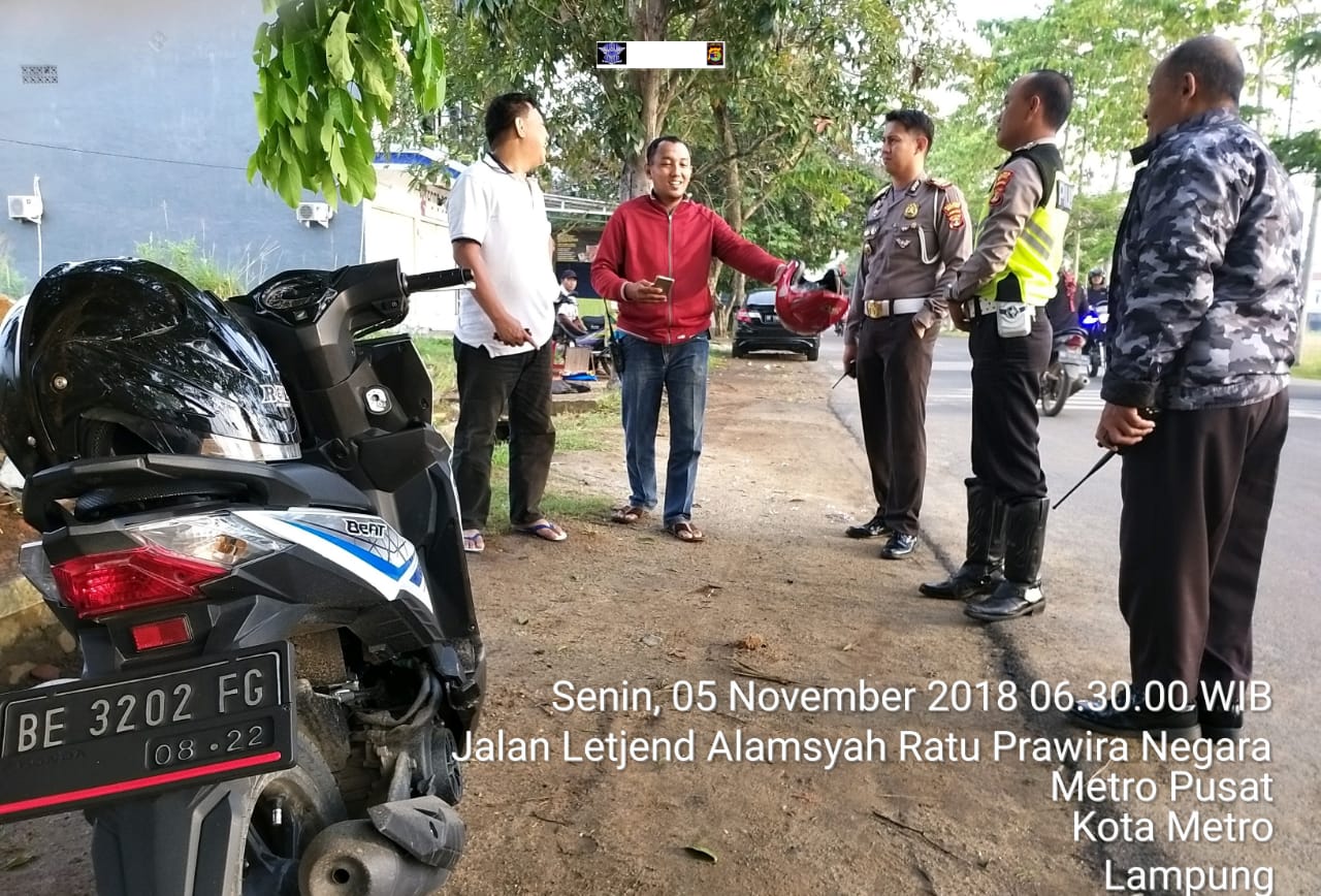 Metro,www.lensamedia.net – Anggota Satuan Lalulintas (Satlantas) Polres Kota Metro berhasil menggagalkan tindak pidana curas (365) Kendaraan R2 Jenis honda Beat warna putih dengan No polisi BE 3202 FG, di jalan Reformasi tepat nya di depan SMPN 1 Metro Pusat yang di kendarai seorang ibu rumah tangga, Senin (05/11/2018).