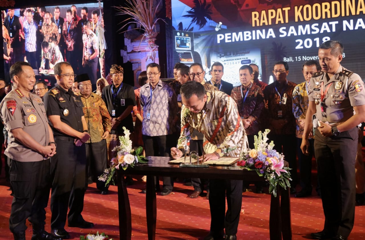 Langkah tersebut merupakan terobosan dalam mengoptimalkan peningkatan pendapatan dari sektor pajak. Dokumen itu menjadi kesepakatan sinergitas antara 24 Pemerintah Provinsi dan pembina Samsat Nasional yakni Kakorlantas Polri Irjen Refdy Andry, Ditjen Bina Keuangan Daerah Kemendagri Syarifuddin, dan Dirut Jasa Raharja Budi Rahardjo Slamet.