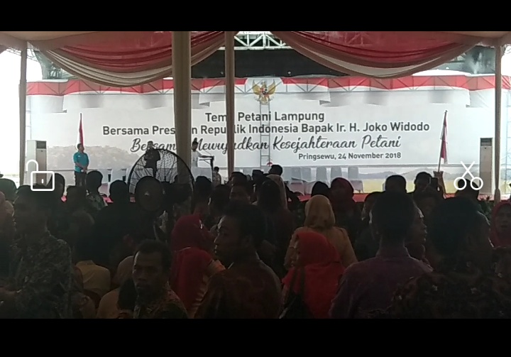 Pringsewu,www.lensamedia.net. – Acara Temu Petani Lampung bersama Presiden RI, Ir. H. Joko Widodo yang berlangsung di lapangan dusun Pelayangan , pekon Pujodadi, kecamatan Pardasuka, kabupaten Pringsewu meski diguyur hujan deras masyarakat tetap antusias menunggu kedatanga presiden Ri sekira pukul 14.00 Wib Sabtu (24/11).