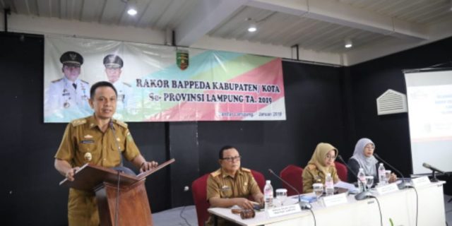 Penegasan Gubernur tersebut disampaikan Asisten II Bidang Ekonomi dan Pembangunan Provinsi Lampung Taufik Hidayat dalam sambutannya saat membuka secara resmi Rapat Koordinasi Bappeda Kabupaten/Kota se-Provinsi Lampung Triwulan I Tahun 2019 yang diselenggarakan di Bukit Randu Hotel, Senin (28/1/19).