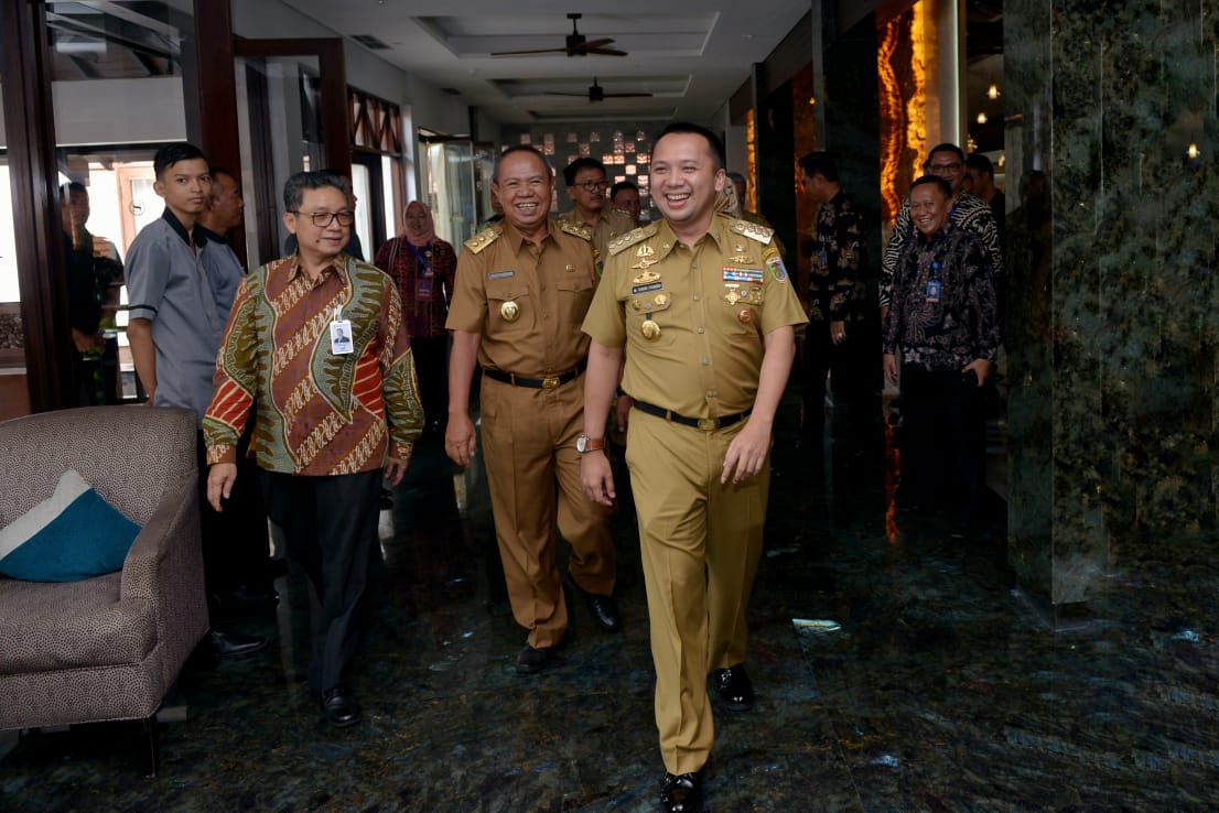 Selain Gubernur Ridho, turut hadir Wakil Gubernur Lampung Bahtiar Basri dan sejumlah kepala daerah tingkat kota / kabupaten di Lampung, tampak turut menghadiri RUPSLB, yang berlangsung secara tertutup(hum)