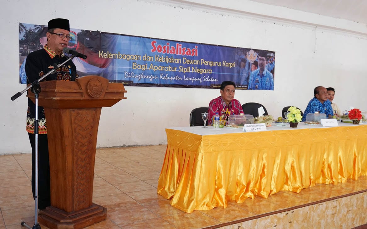 Lampung selatan www.lensamedia.net– Dewan Pengurus Korps Pegawai Republik Indonesia (DP KORPRI) menggelar sosialisasi kelembagaan dan kebijakan bagi Aparatur Sipil Negara (ASN) dilingkungan Pemerintah Kabupaten (Pemkab) Lampung Selatan, Jumat (3/5/2019).