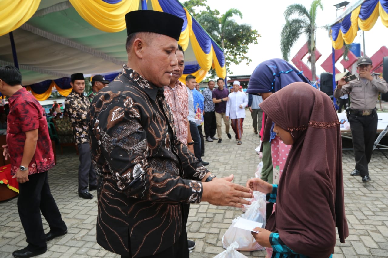 (Pemkab) Lampung Selatan membagikan bingkisan berupa paket sembako kepada 120 anak yatim piatu dan warga kurang mampu pada kegiatan pasar yang digelar di Menara Siger, Kecamatan Bakauheni, pada Sabtu (11/5/2019).