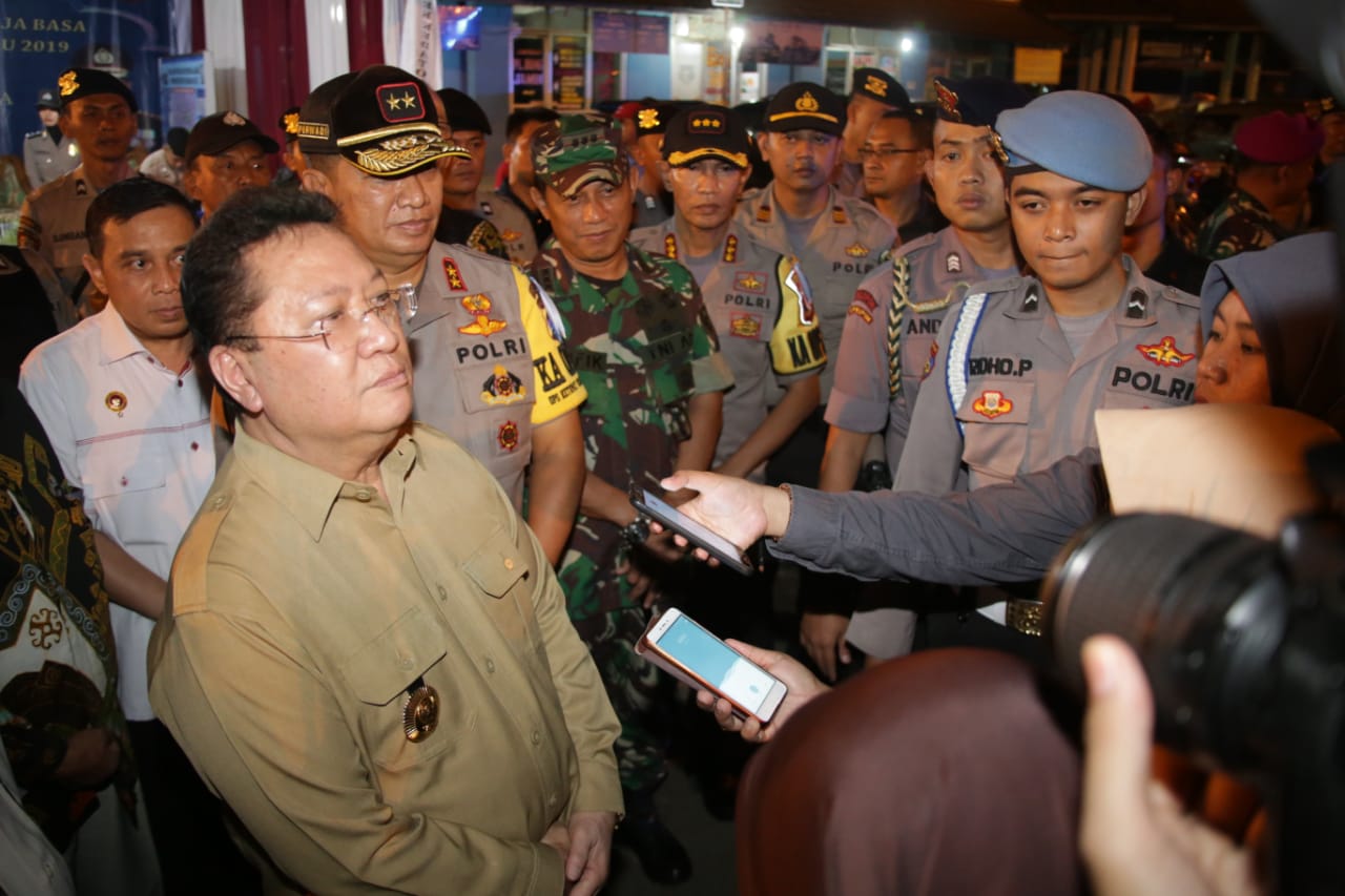 BANDAR LAMPUNG www.lensamedia.net – Pj. Gubernur Lampung Boytenjuri, memastikan arus mudik di Provinsi Lampung aman dan kondusif. Hal itu diungkapkan Pj. Gubernur Boytenjuri, setelah melakukan pemantauan situasi di sejumlah pos pengamanan pada malam Takbir Hari Raya Idul Fitri 1440 H, di Bandar Lampung, Selasa (4/6/2019) malam.