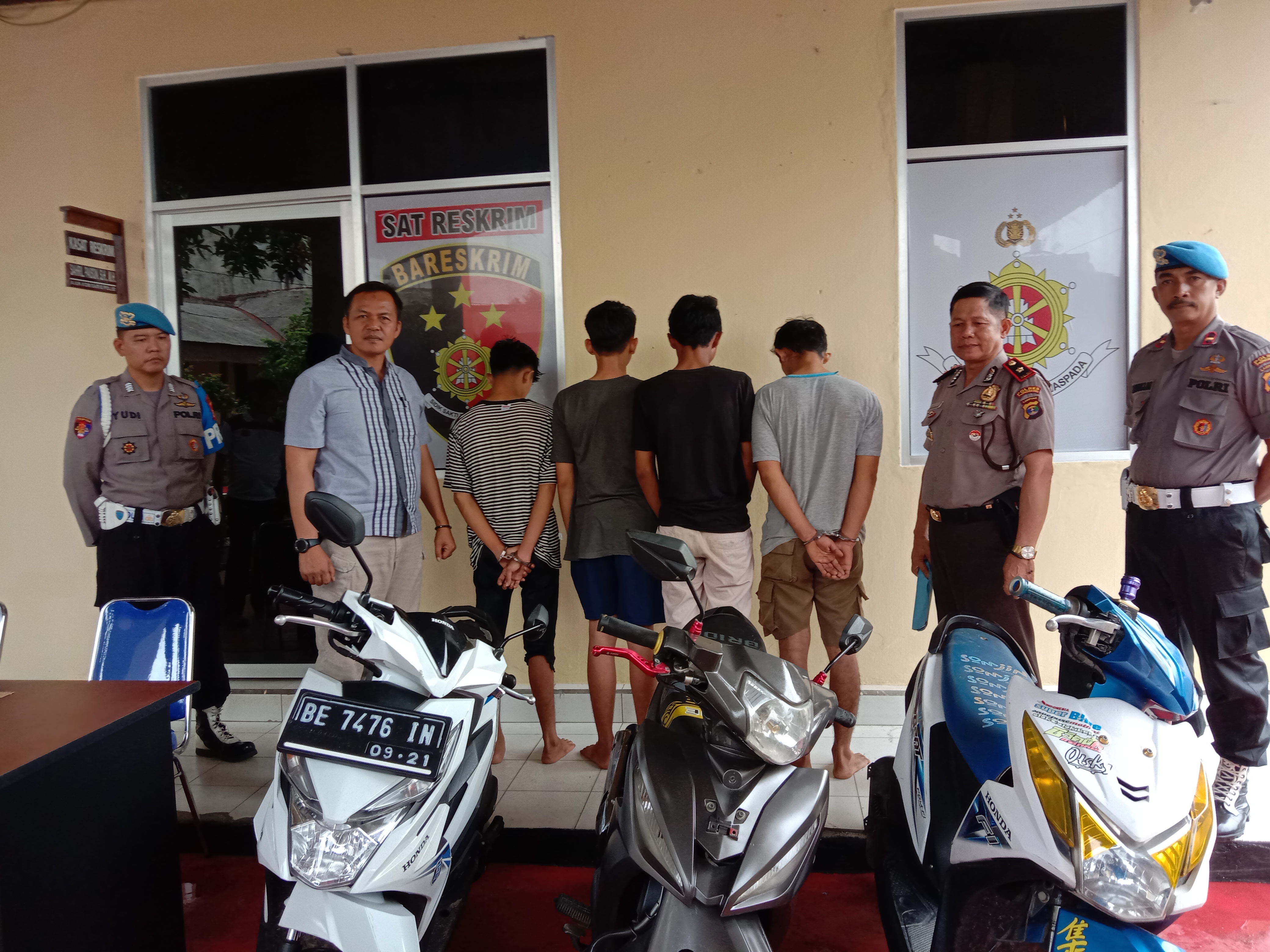 Dari keempatnya, petugas juga mengamankan tiga unit sepeda motor, termasuk motor beat warna putih dengan nomer polisi BE 7476 IN yang digunakan pelaku dalam melancarkan aksi kejahatannya.