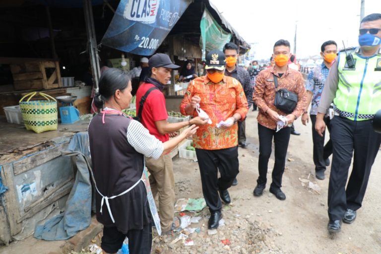Nanang Ermanto turun bersama Tim Gugus Tugas Penanganan Covid-19 Kabupaten Lampung Selatan. Titik pertama yang dikunjungi Nanang beserta tim berada di Pasar Natar.