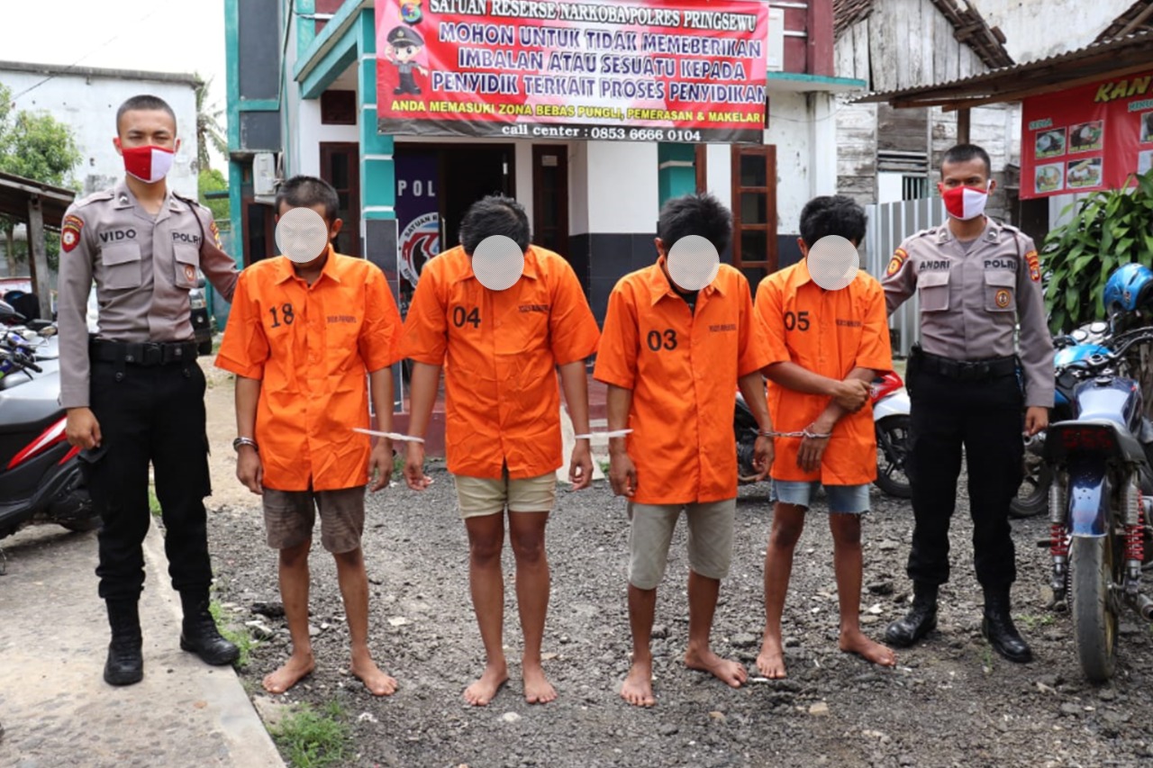 Kasat Narkoba Iptu Dedi Wahyudi, SH mewakili Kapolres Pringsewu AKBP hamid Andri Soemantri, SIK menjelaskan Rangkaian penangkapan ke empat tersangka dimulai dari tersangka RS, NR dan F als Ateng kami lakukan penangkapan dirumah tersangka RS tepatnya di pekon Pujodadi kec. Pardasuka Kab. Pringsewu pada hari Selasa 05 Mei 2020 jam 20.00 wib, saat dilakukan penangkapan ketiga pelaku diduga tengah mengkonsumsi sabu dan Saat dilakukan penggeledahan didapatkan barang bukti berupa satu buah kaca pirek bekas pakai dan alat hisap sabu serta dua unit handphone.