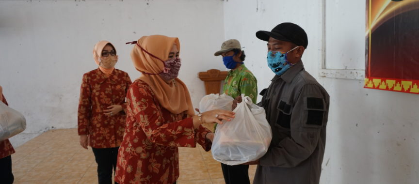 Lampung Selatan,www.lensamedia.net – Dharma Wanita Persatuan (DWP) Kabupaten Lampung Selatan menyalurkan bantuan 150 paket sembako untuk tenaga kebersihan kantor dilingkup Pemerintah Kabupaten (Pemkab) Lampung Selatan. Hal itu guna meringankan beban mereka ditengah pandemi virus korona (Covid-19).