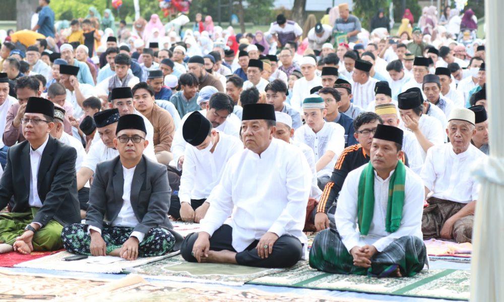 BANDARLAMPUNG, www.lensamedia.net Gubernur Arinal Djunaidi dan Wakil Gubernur Chusnunia melaksanakan Shalat Ied bersama Forkopimda, Kepala OPD dilingkungan Pemprov Lampung dan masyarakat di Lapangan Enggal Bandar Lampung, Sabtu (22/04/2023).