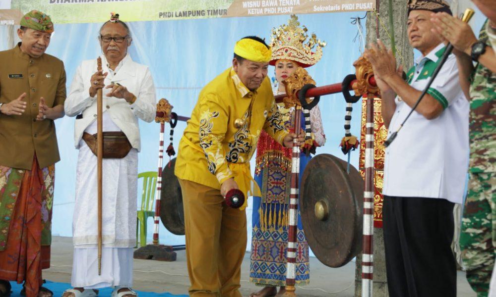 Dalam kesempatan yang sama, Ketua Umum Pengurus Harian PHDI Pusat Mayjen TNI (Purn) Wisnu Bawa Tanaya, mengajak untuk bersama-sama membangun Negara Kesatuan Republik Indonesia, termasuk membangun Provinsi Lampung, dan Lampung Timur ini untuk lebih baik kedepannya, terutama membangun sumber daya manusia Indonesia, termasuk SDM umat hindu di Lampung.