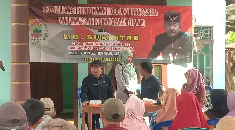 lampungselatan,www.lensamedia.net Anggota DPRD Kabupaten Lampung Selatan Komisi I dari Fraksi Golkar Made Sukintre melaksanakan sosialisasi Pembinaan Ideologi Pancasila dan Wawasan kebangsaan (IPWK), kepada masyarakat Desa Bangunan Kecamatan Palas Kabupaten Lampung Selatan, yang termasuk daerah dapil II, Sidomulyo, Way Panji dan Palas, Senin, (24/7/2023).
