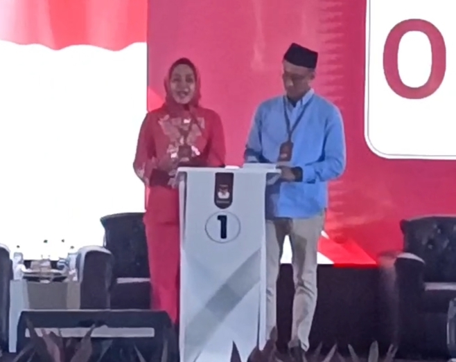 Tulang Bawang, Lensa Media – Dalam debat Publik Perdana yang dilaksanakan oleh KPUD Tulang Bawang sebagai tujuan Adu gagasan maupun penyampaian program kerja untuk lima tahun kedepan, Paslon calon Bupati dan calon Wakil Bupati Tulang Bawang Nomor Urut 1 Winarti-Reynata atau Win-Nata menguasai panggung debat.