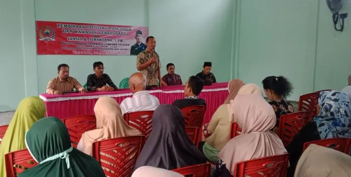 lampungselatan,www.lensamedia.net Anggota DPRD Lampung Selatan Samsul H. Suhartono S.Pd Gelar Ideologi Pancasila dan Wawasan Kebangsaan (IPWK) di Balai Desa Sidoasri Kecamatan Candipuro, Sabtu (15/3/2025).