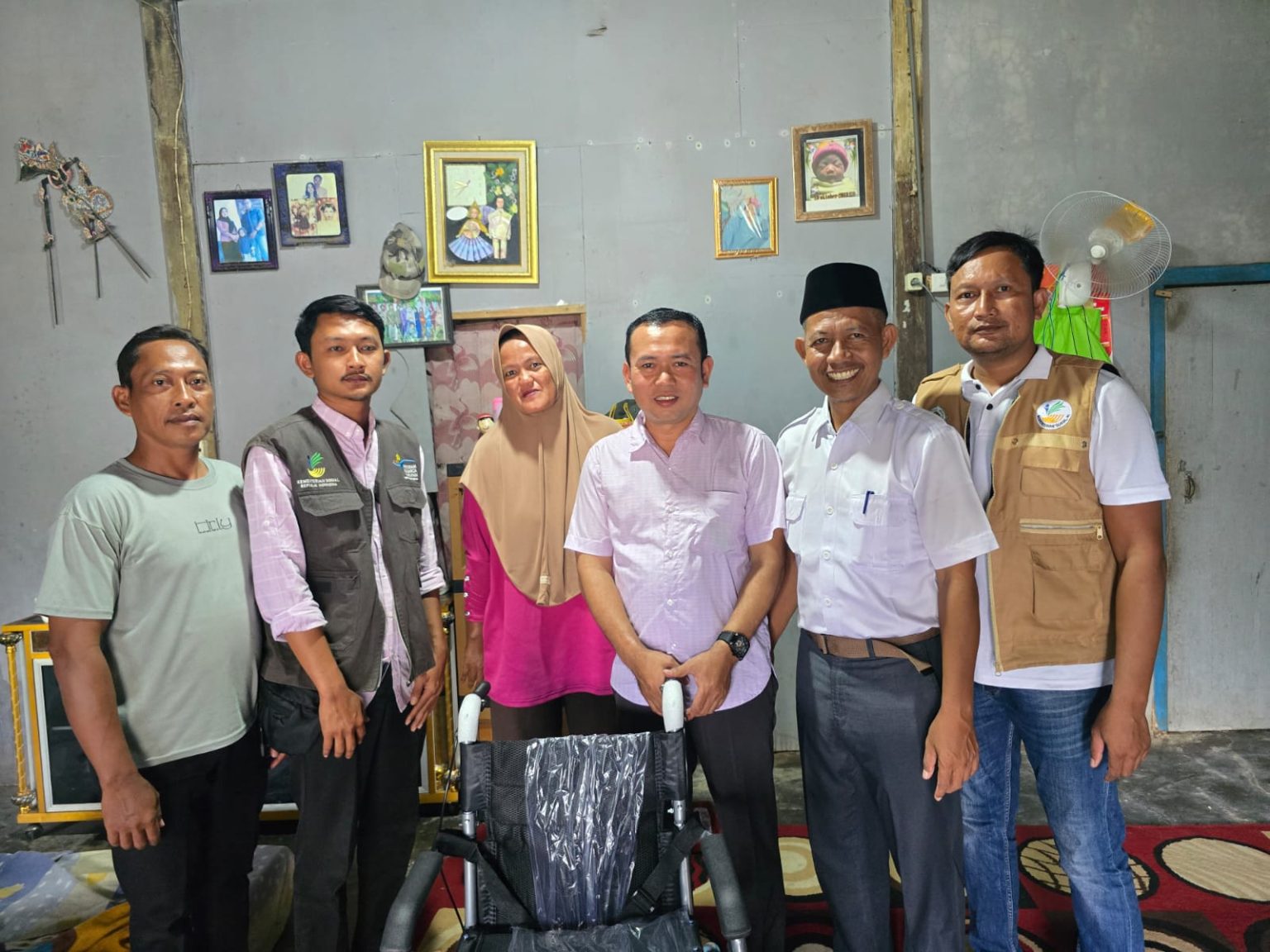 Bersama pemerintah Desa, pendamping PKH, Pekerja Sosial Masyarakat (PSM) Kecamatan Sidomulyo. Satu unit kursi roda di serahkan oleh Panirin (68) yang sedang sakit menahun lamanya.