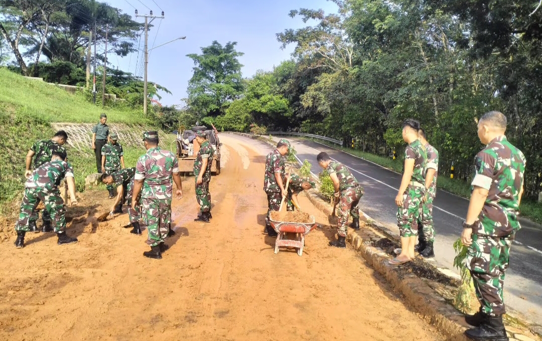 Way Kanan – Sebagai bentuk respons cepat terhadap bencana alam yang terjadi di wilayahnya, Pengganti Sementara Komandan Kodim 0427/Way Kanan, Letkol Inf M. Sofrianes Salam, S.Ag, M.Han., langsung mengerahkan personel TNI untuk membantu membersihkan jalan yang tertutup lumpur akibat hujan deras.