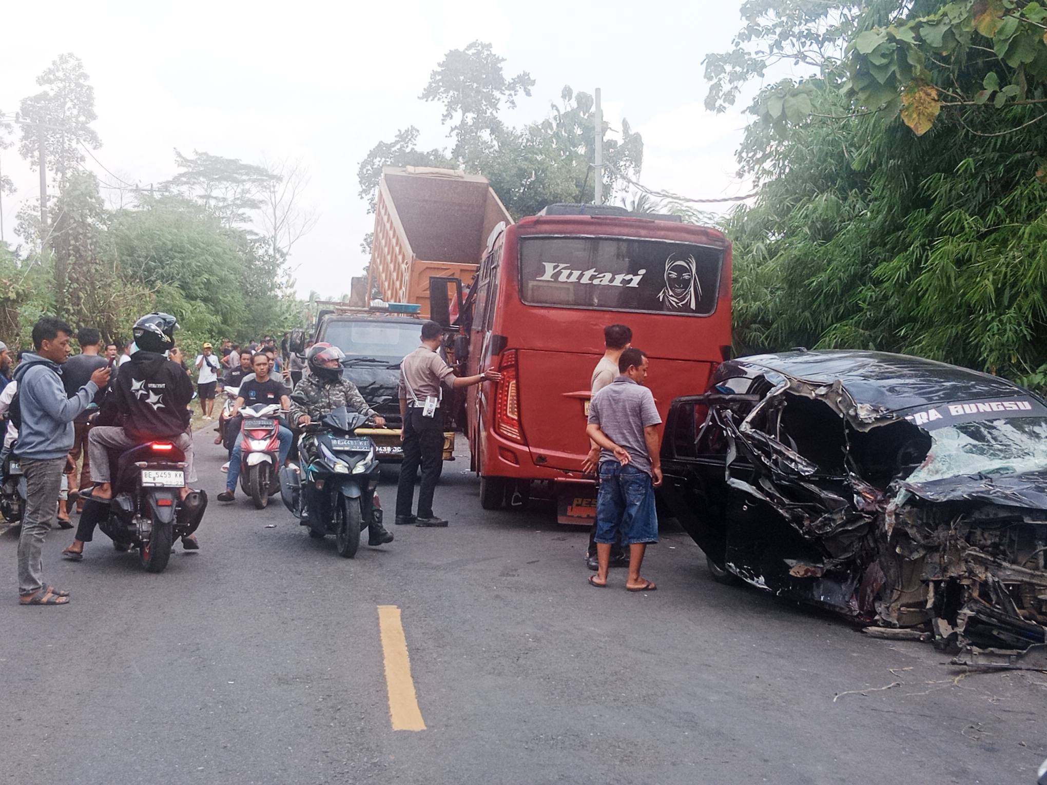 Salah satu mobil yang terlibat dalam tabrakan ini adalah unit travel yang menuju arah Bandar Lampung dan Fuso serta Bus arah Bukit Kemuning. Dalam insiden ini, 1 orang dilaporkan meninggal dunia, sementara lainnya mengalami luka-luka.