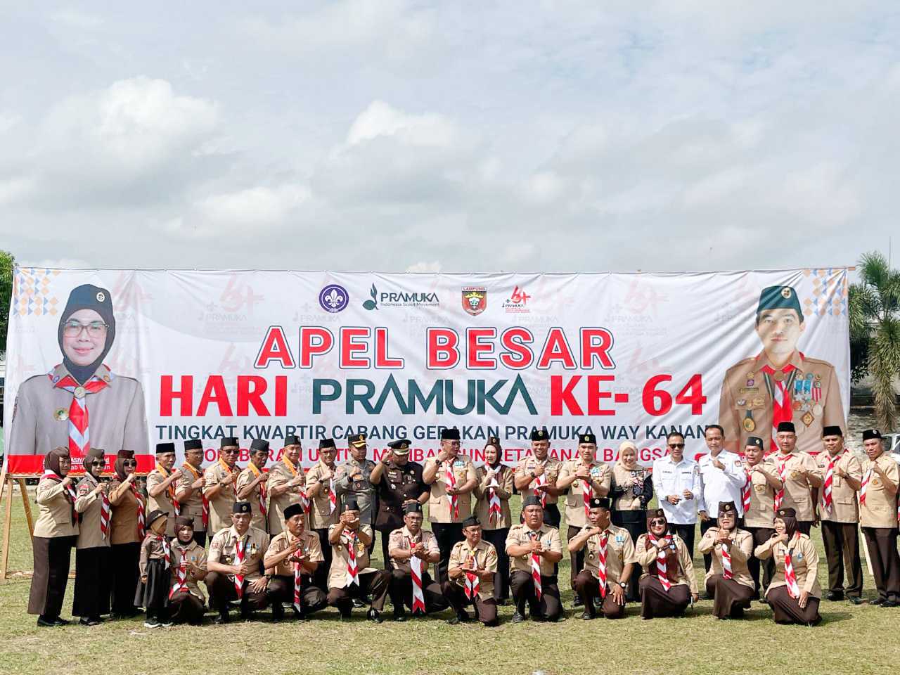 “Hari ini kita melakukan apel hari jadi Pramuka ke 64 bersama seluruh unsur dari pemerintahan, forkopimda, forkopimcam bersama seluruh sekolah yang ada di Kabupaten Way Kanan,” ungkap Machiavelli.