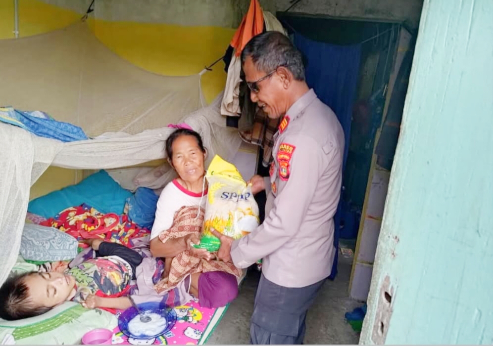 Baradatu – Kapolres Way Kanan AKBP Adanan Mangopang yang diwakilkan Kapolsek Baradatu AKP Herwin Afrianto mengunjungi sekaligus memberikan bansos (bantuan sosial) beras 5 Kg kepada 30 warga yang kurang mampu di wilayah hukum Polsek setempat. Kamis (04/09/2025).
