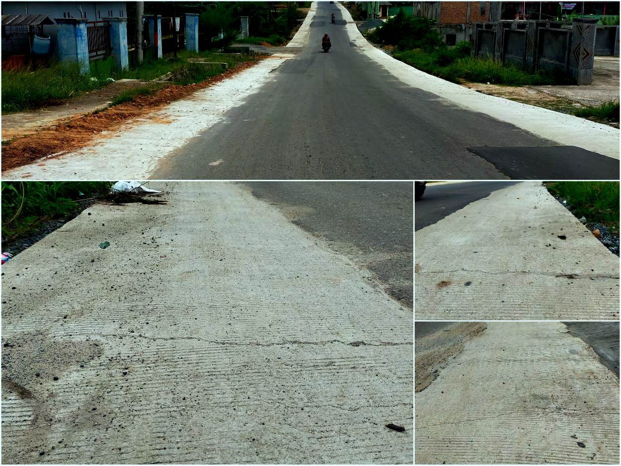 Baru dalam hitungan hari pasca pengerjaan, proyek tersebut kini kondisinya memprihatinkan. Berdasarkan pantauan wartawan di lokasi pada Senin pagi (05/01/2026), beton bahu jalan tersebut sudah mengalami banyak keretakan hingga patah (snapping) di berbagai titik.
