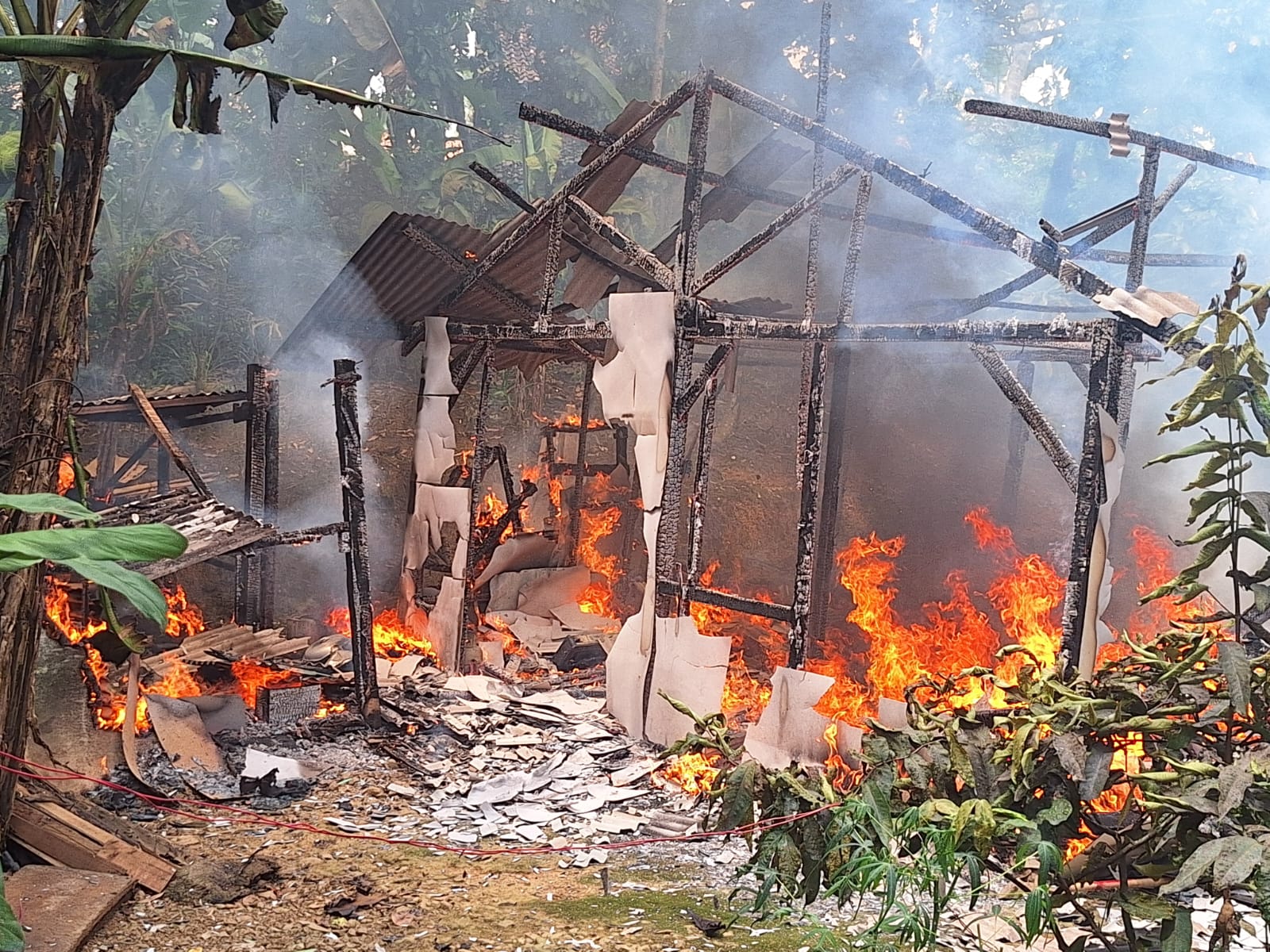 Api tidak bisa dipadamkan karena kami kesulitan mencari air untuk menyiram rumah tersebut,” jelasnya.