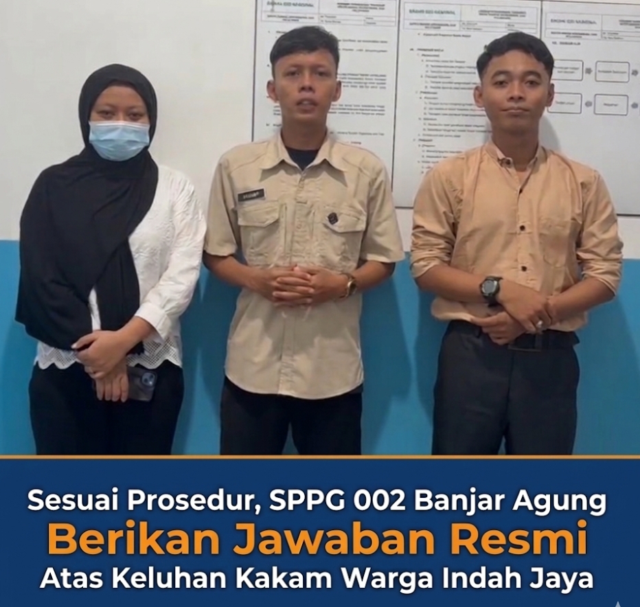 Tulang Bawang, Lensa Media – Kepala Satuan Pelayanan Program Gizi (SPPG) 002 Banjar Agung, A. Ilham Paisal, S.H., memberikan klarifikasi resmi terkait beredarnya video viral di media sosial Facebook yang diunggah oleh akun Facebook Kakam Warga Indah Jaya, yang merupakan Kepala Kampung Warga Indah Jaya Kecamatan Banjar Agung, Kabupaten Tulang Bawang.