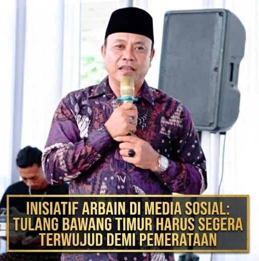 ”Salah satu jalannya adalah apabila Kabupaten Tulang Bawang dipecah lagi. Agar pembangunan di setiap kecamatan dan desa bisa lebih cepat merata, serta anggaran APBD dari pusat bisa meng-cover pembangunan di masing-masing wilayah,” tulis Arbain dalam unggahannya.