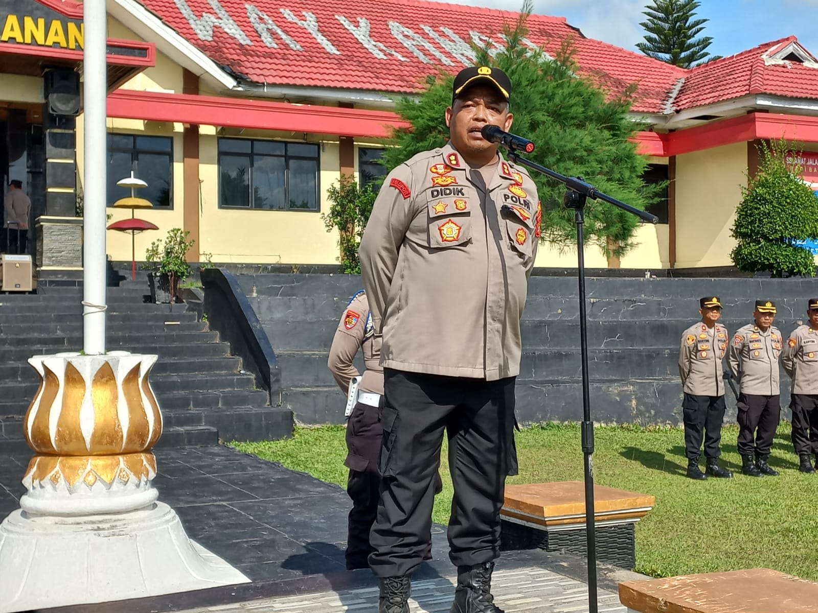 Kegiatan yang dipimpin oleh Kapolres Way Kanan AKBP Didik Kurnianto, S.I.K melibatkan Pejabat Utama, Kapolsek jajaran, seluruh personel Polres Way Kanan, Polsek jajaran, ASN Polres Way Kanan dan Sabuk Kamtibmas (LSM Topan RI, PSNU, Pagar Nusa, Rapi Way Kanan, Kokam, Banser, PSHT dan Senkom).