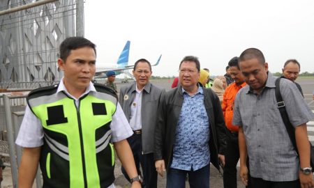 LAMPUNG SELATAN www.lensamedia.net-Penjabat (Pj) Gubernur Lampung, Boytenjuri tiba di Provinsi Lampung, Senin (3/6/2019), di Bandara Radin Inten II, Branti Raya, Natar, Lampung...