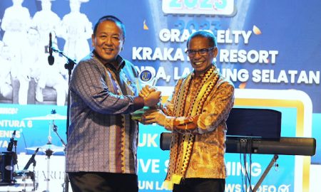 lampungselatan,www.lensamedia.net Gubernur Lampung, Arinal Djunaidi terima penghargaan dalam ajang Tribun Lampung Award in Collaboration 2023 di Grand Elty Krakatoa Resort, Kalianda, Lampung...