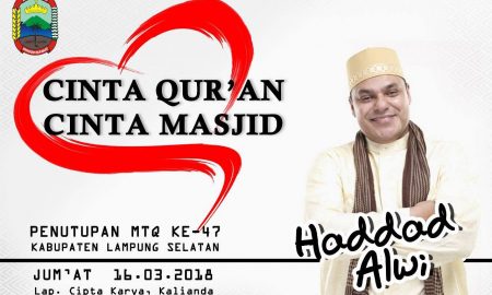 Lampung Selatan, www.lampungmediaonline.com – Malam penutupan Musabaqoh Tilawatil Qur’an (MTQ) ke-47 tingkat Kabupaten Lampung Selatan akan dimeriahkan artis ibukota Haddad Alwi. Rencananya,...