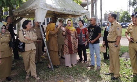 Ketua Umum Panitia Harganas Aprilani Yustin Ficardo meninjau PKOR Way Halim, Senin (03/07/2017), sebagai persiapan pelaksaan Harganas yang akan dipusatkan di Lampung...