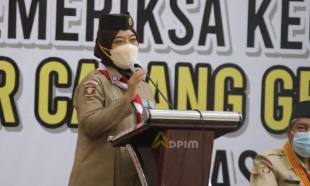 METRO, www.lensamedia.net Ketua Kwarda Pramuka Lampung Chusnunia Chalim melantik Pengurus Kwartir Cabang Gerakan Pramuka Kota Metro, di Gedung Sesat Agung Bi Sai...