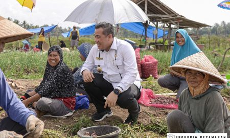 Pesawaran, www.lensamedia.net -Bupati Pesawaran, Dendi Ramadhona bersama perangkat desa sukadadi meninjau panen bawang merah yang berlokasi di Desa Sukadadi, Kecamatan Gedong tataan,...