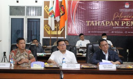 Way Kanan, www.lensamedia.net Komisi Pemilihan Umum, KPU Kabupaten Way Kanan bersama dengan Bawaslu dan Forkopimda Kabupaten Way Kanan menyaksikan bersama peluncuran tahapan...