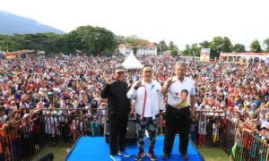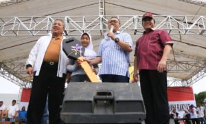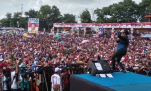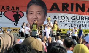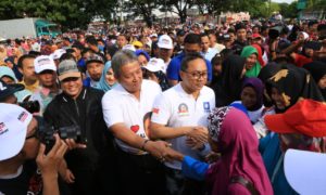 Pesawaran, www.lensamedia.net – Ribuan peserta jalan sehat bersama bakal calon Gubernur Lampung Ir Arinal Djunaidi bergoyang ria saat bintang tamu Duo Intan...