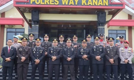 Way Kanan – Kapolres Way Kanan AKBP Adanan Mangopang, menggelar upacara Serah Terima Jabatan Kabag Logistik, Kasipropam, Kasikum, Kapolsek Pakuan Ratu dan...